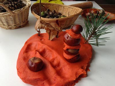 Spielen mit Herbstmaterialien und herbstlich duftender Knete