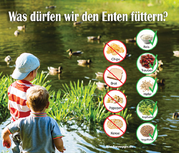 Fragen Sie die Kinder, ob sie noch wissen, welches Futter wir Enten nicht geben sollten?