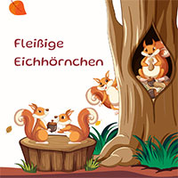 Mit lustigen Eichhörnchen-Liedern, Reimspielen, Eichhörnchen-Bastelideen und Bewegungsspielen entdecken die Kinder, wie Eichhörnchen Nüsse sammeln, Nester bauen und ihren Freunden im Wald helfen.