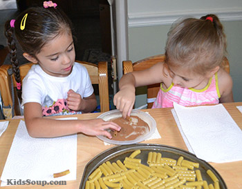 Feuchten Sie die Rigatoni-Nudeln mit Wasser an und rollen Sie sie anschließend in Zimt.