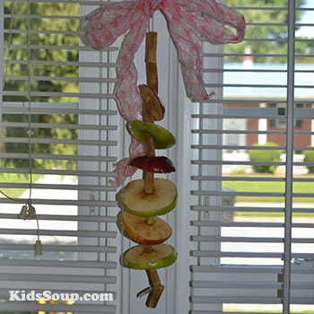 Duftende Fensterhänger: Getrockneter Apfel und Zimtnudeln