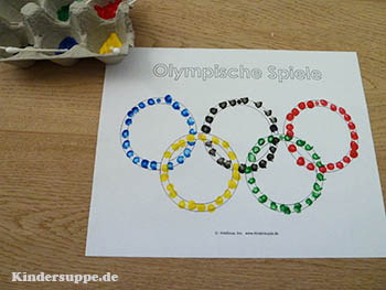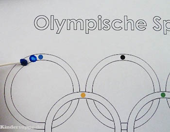 Lassen Sie die Kinder mit den Wattestäbchen die olympischen Ringe in der richtigen Farbe betupfen.